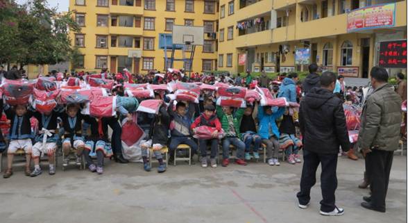 南丹縣里湖鎮(zhèn)是廣西白褲瑤聚居鄉(xiāng)鎮(zhèn),被譽為“中國白褲瑤之鄉(xiāng)”。那里的學生學習和生活條件都十分艱苦,很多孩子在嚴寒的冬天依然缺衣少襪,有的還穿著涼鞋單衣。千帆公司給南丹縣里湖鎮(zhèn)的瑤族鄉(xiāng)民族中學、中心小學和干河小學的孩子們帶來了大批的冬衣、學習設備等愛心物資。希望在寒冷的冬日,能讓山村的孩子們感受到濃濃的暖意。