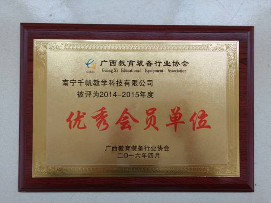 熱烈慶祝南寧千帆榮獲“2014-2015年度-廣西教育裝備行業(yè)協(xié)會優(yōu)秀會員單位”稱號