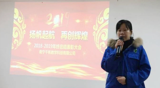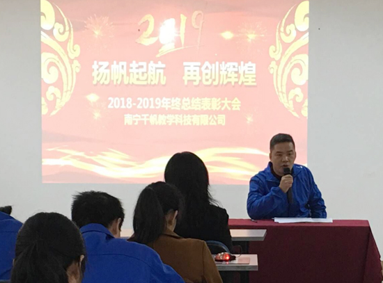 總經理黃曉春總結了2018年公司的整體運營情況,明確了2019年的戰(zhàn)略目標和發(fā)展思路:2018年千帆公司在惡劣的市場環(huán)境下依然取得不錯的成績,這是全體千帆人共同努力的結果。但是,我們還存在許多不足,新的一年,我們必須直面問題、解決問題,加速重點市場的拓展,完善和優(yōu)化公司內部管理。期望公司全體員工在新的一年里振奮精神,攻克難關,再接再厲,繪制千帆公司的新篇章。黃總的講話站得高、看得遠,使每一個千帆人都感受到了公司的光明前景,更加堅定了我們的信心。